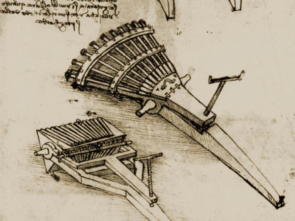 Nakon što je napustio Verrochio-vu radionicu 1477., Leonardo je bio u potrazi za novim izazovima i načinima kako da zaradi za život. Sljedeća njegova veća suradnja je bila s vojvodom Milana, Ludovico Sforza. Ušao je u njegovu službu 1482. Ostao je tamo do 1499. Radio je kao vojni inženjer. U to doba Leonardo je dosegao nove vrhunce u svom slikarstvu, ali također i nove vrhunce u znanstvenim i izumiteljskim vodama. Za vojvodu je morao dizajnirati oružja, strojeve, mašine, građevine i sve što bi moglo pomoći i poslužiti u borbi za moć. Leonardo je bio genije jer je imao drugačiji pristup kada je bila riječ o dizajniranu novog oružja i mehanizama. Kao što smo i ranije spomenuli, sve je pomno promatrao i kako bi razumio ono što promatra, pokušavao je to nacrtati. Na isti način je promatrao i crtao sve dijelove mehaničkih strojeva kako bi lakše razumio funkciju svakog dijela i kako je svaki dio povezan sa svime ostalim. Proučavanjem, promatranjem i crtanjem različitih mehaničkih dijelova, vrlo brzo je postao sposoban izumiti svoje vlastite strojeve i izume. Dizajnirao je razna oružja i strojeve, razne arhitetske građevine i projekte (crkve, utvrde, mostove,…). Neki od najzanimljivijih projekata koje je dizajnirao i izumio su: helikopter, tenk, ronilačko odijelo, padobran, strojnica, samostojeći most, kalkulator, podmornica, robot, leteća mašina i mnogi drugi izumi. Bio je toliko ispred svog vremena da mnogi njegovi izumi nisu nikada sagrađeni.