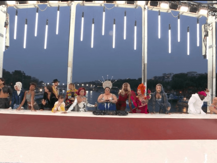 Thomas Jolly, glavni redatelj ove ceremonije je rekao da motiv nije bio napraviti parodiju Da Vinci’jeve Posljednje večere, već da je htio prikazati veliku gozbu poganskih bogova koji su povezani s bogovima s Olimpa.